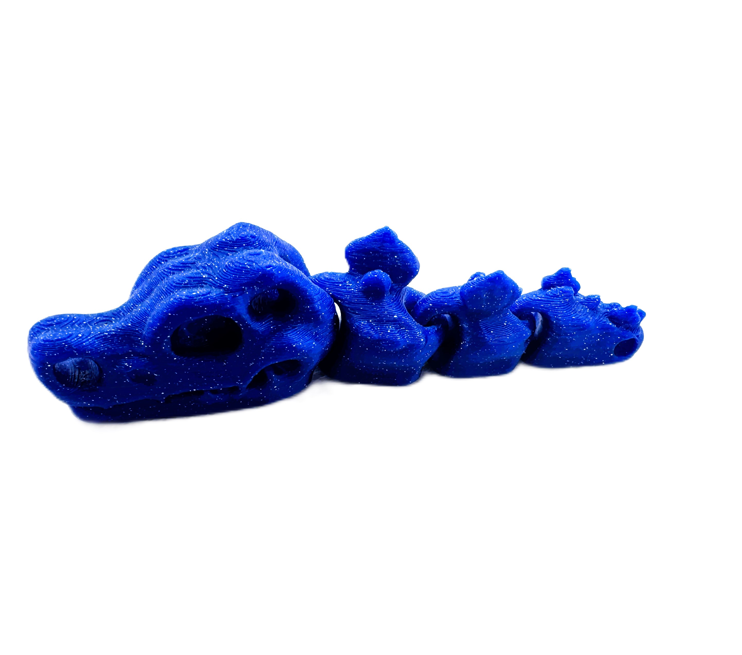 Szukasz wyjątkowego gadżetu? Postaw na nasz brelok Flexi Czaszki T-Rex w efektownym  kolorze Galaxy Niebieski! Elastyczna konstrukcja i futurystyczny design przyciągają wzrok i dodają charakteru kluczom, plecakowi czy torebce. Wydruk 3D z dbałością o detale, lekki i trwały. Idealny na prezent dla fana dinozaurów i niebanalnych dodatków!