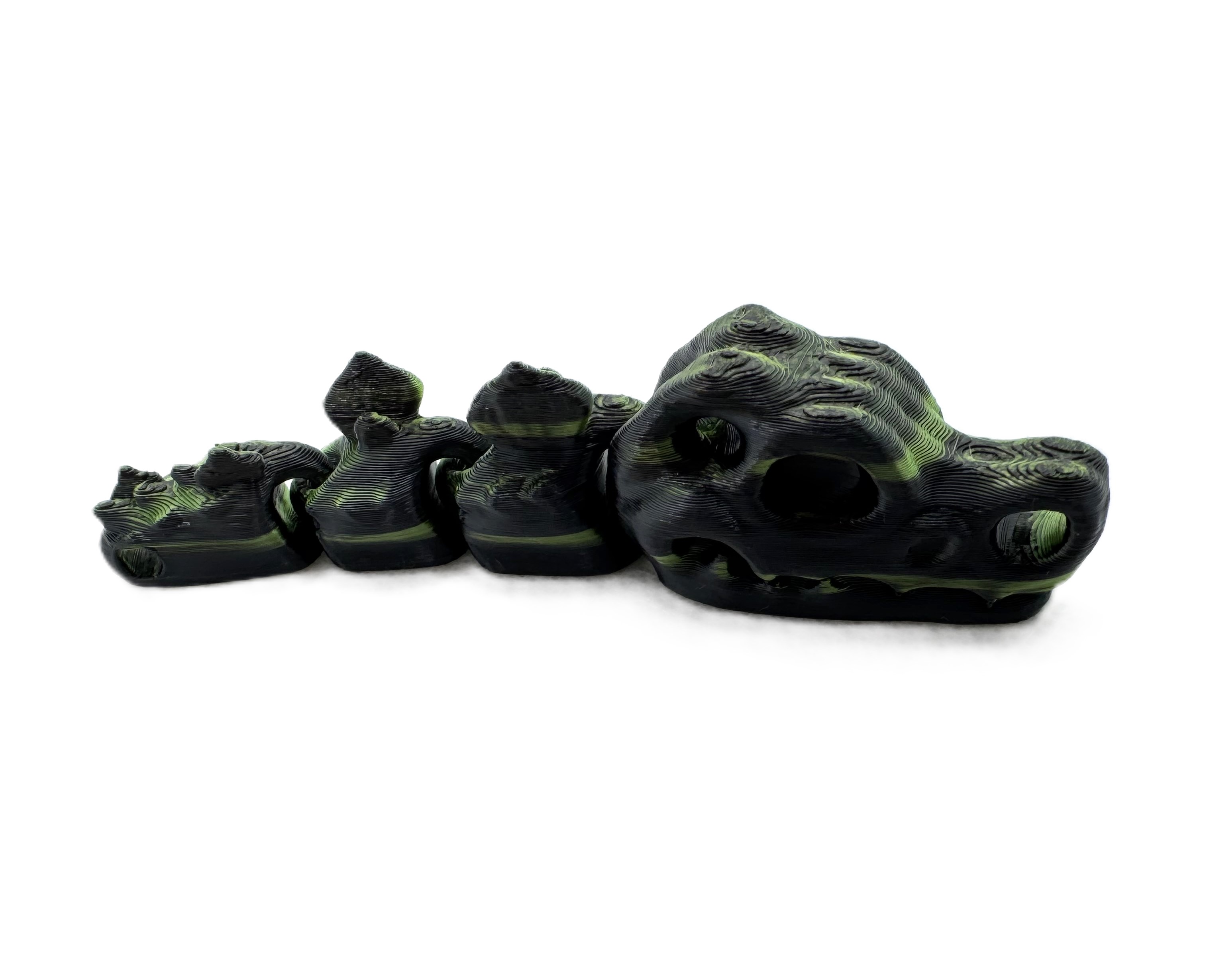 Szukasz wyjątkowego gadżetu? Postaw na nasz brelok Flexi Czaszki T-Rex w efektownym  Mistyczno - Zielonym kolorze! Elastyczna konstrukcja i futurystyczny design przyciągają wzrok i dodają charakteru kluczom, plecakowi czy torebce. Wydruk 3D z dbałością o detale, lekki i trwały. Idealny na prezent dla fana dinozaurów i niebanalnych dodatków!