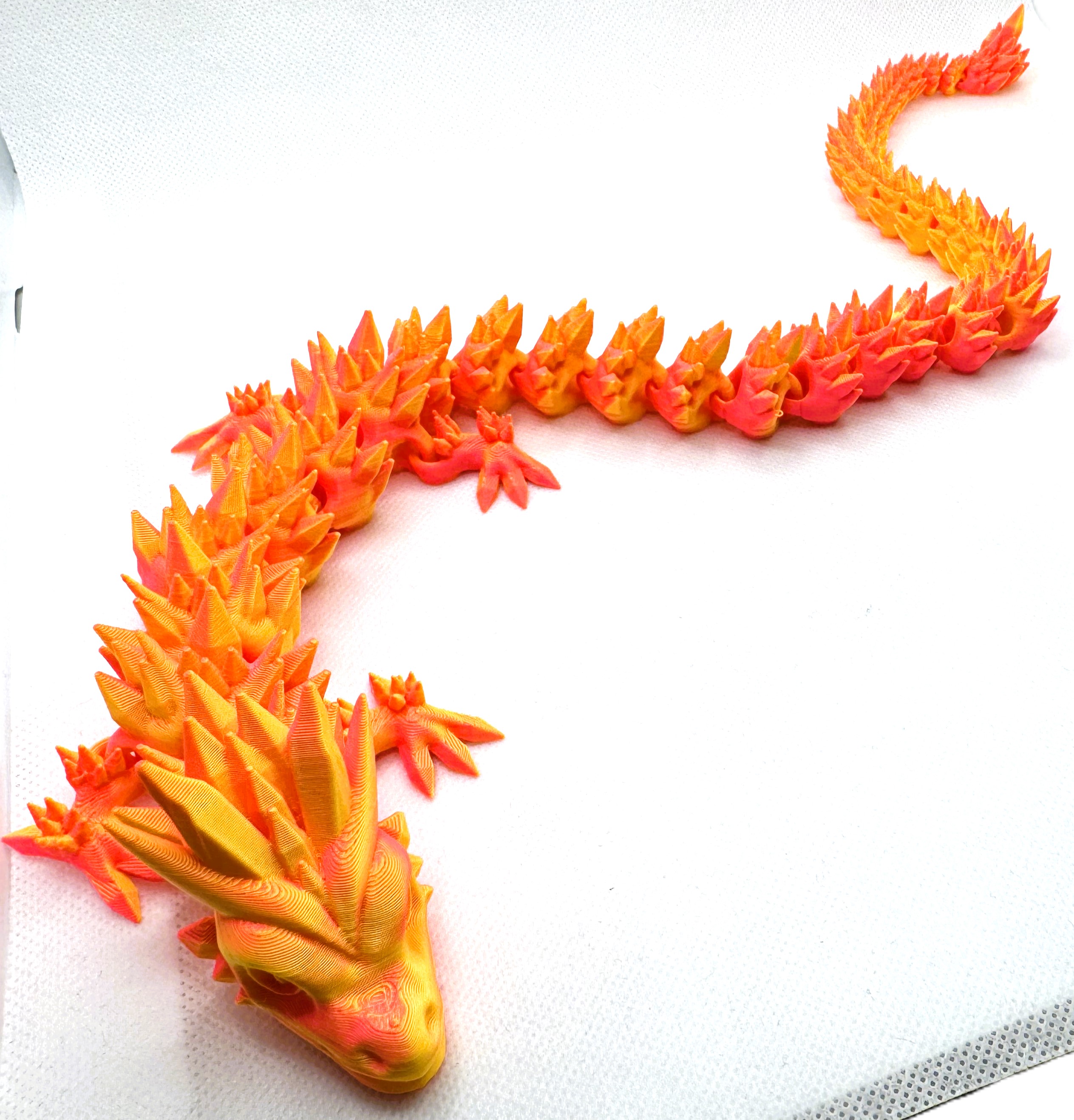 Przenieś magię do swojego wnętrza dzięki imponującemu smokowi Dragon Crystal! Wydrukowany w technologii 3D, ten majestatyczny smok o długości 52 cm zachwyca detalami i dynamiczną kolorystyką w odcieniach pomarańczu. Idealny jako dekoracja, prezent dla fana fantasy lub unikatowy element kolekcji. Wykonany z wysokiej jakości filamentów PLA, trwały i lekki.