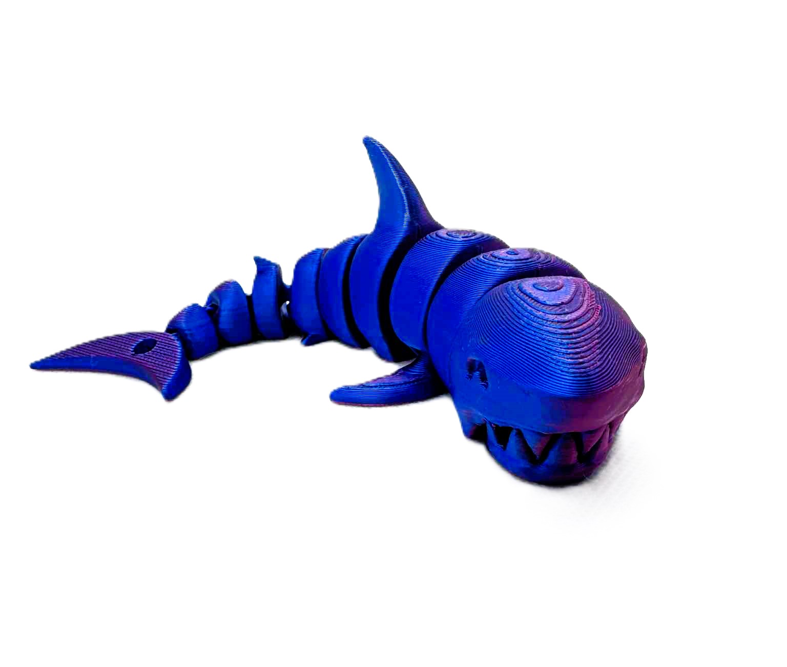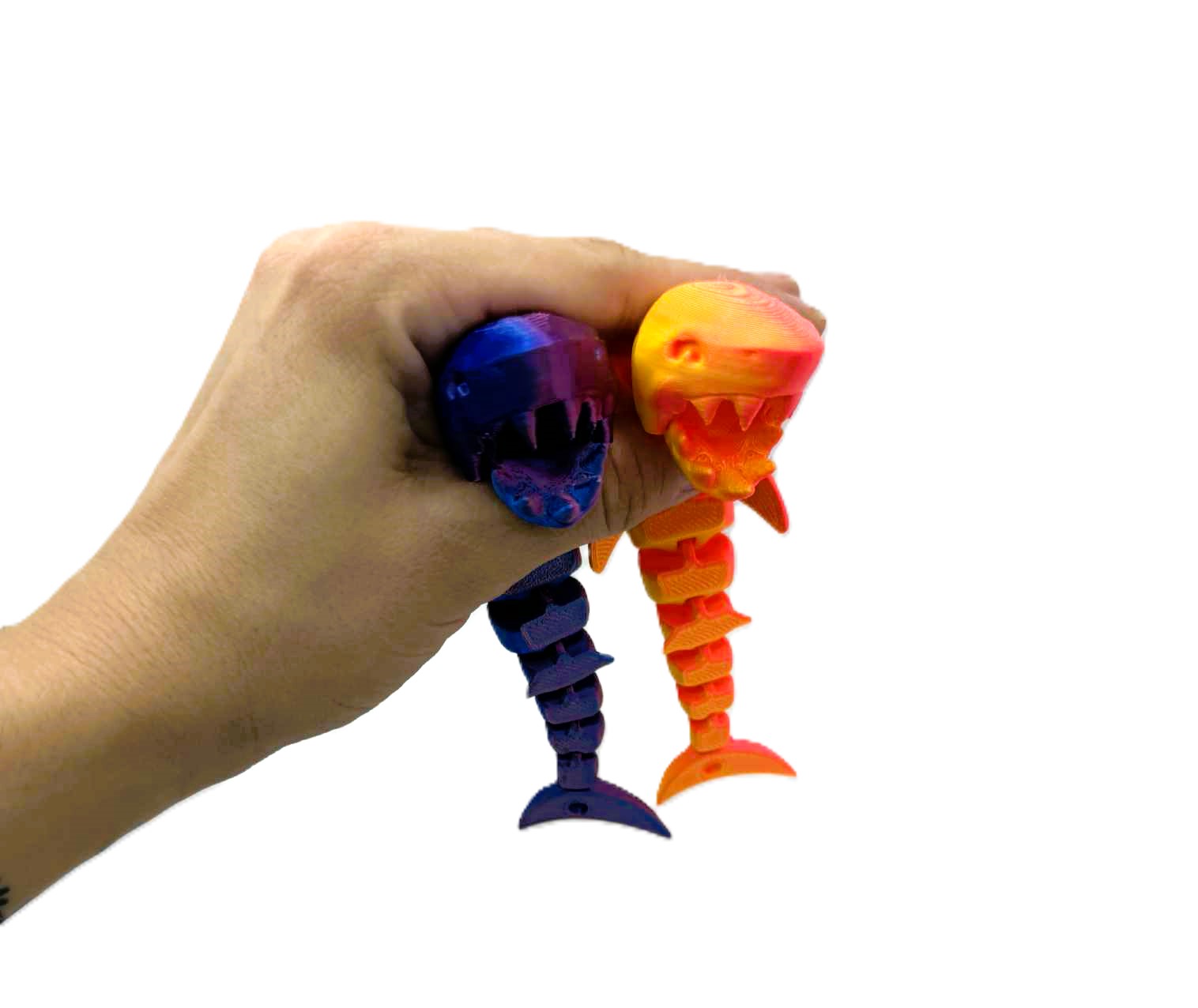 Poznaj uroczego Flexi Rekinka, stworzonego w technologii druku 3D z elastycznych segmentów, które pozwalają mu swobodnie się poruszać! Idealny jako brelok do kluczy, zabawka antystresowa lub oryginalna figurka na biurko.