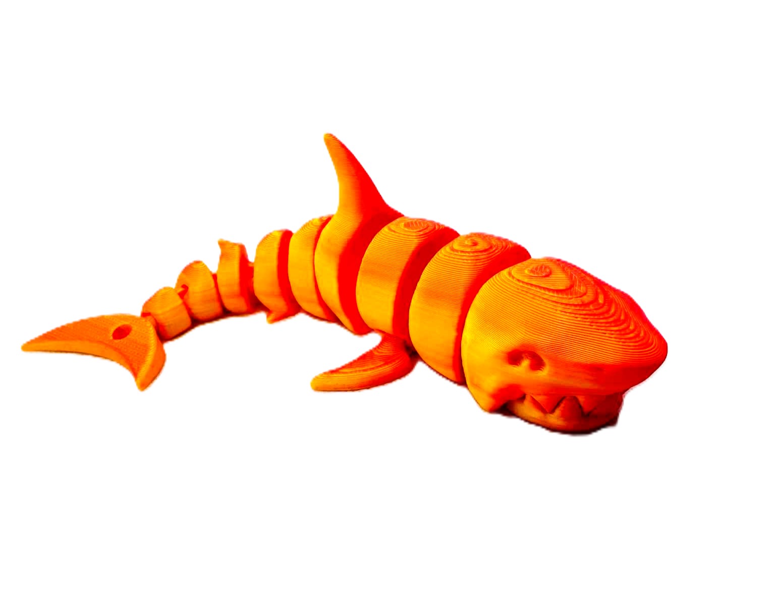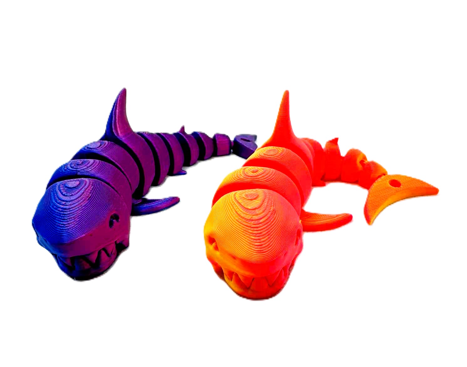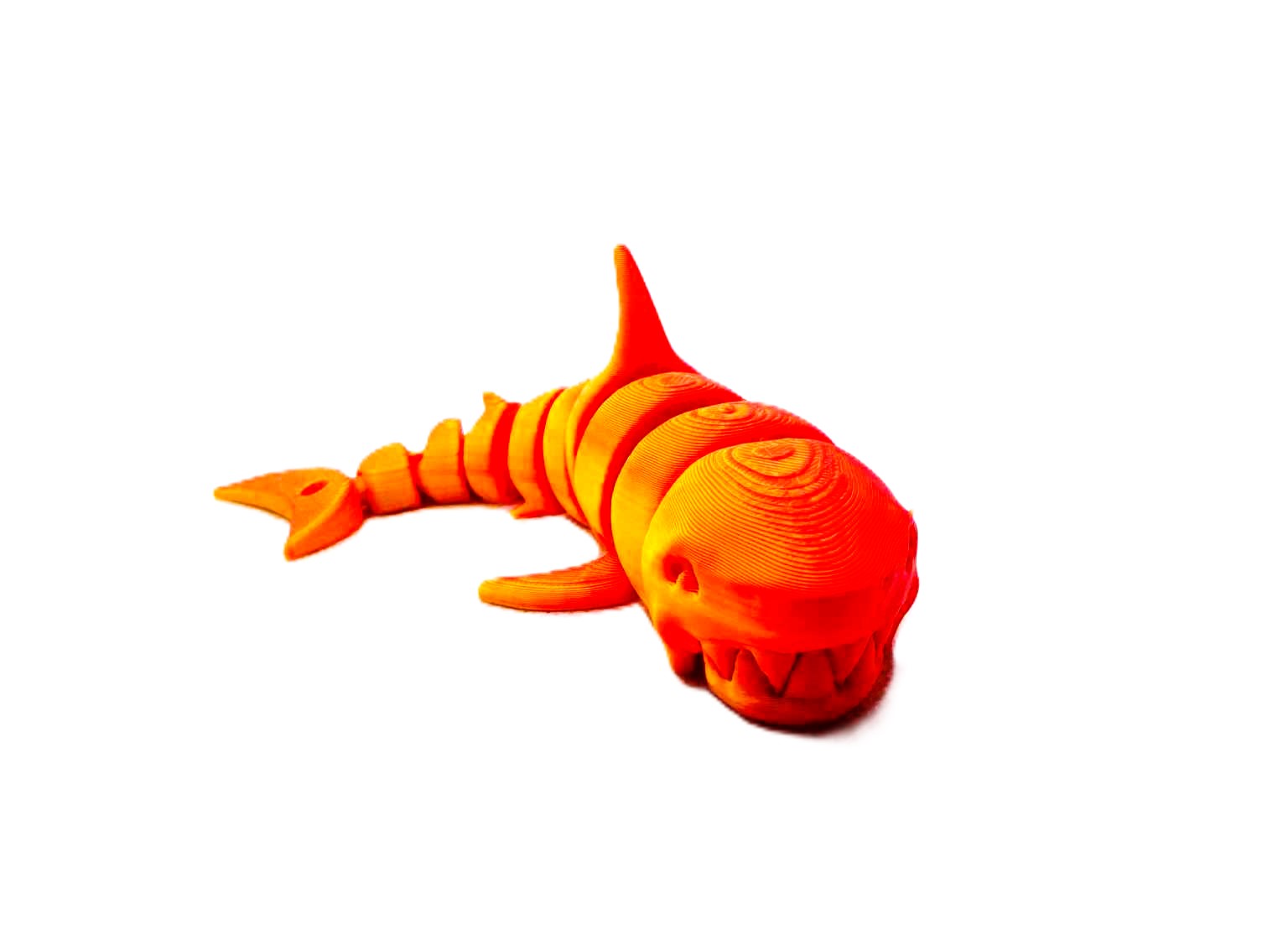 Poznaj uroczego Flexi Rekinka, stworzonego w technologii druku 3D z elastycznych segmentów, które pozwalają mu swobodnie się poruszać! Idealny jako brelok do kluczy, zabawka antystresowa lub oryginalna figurka na biurko.